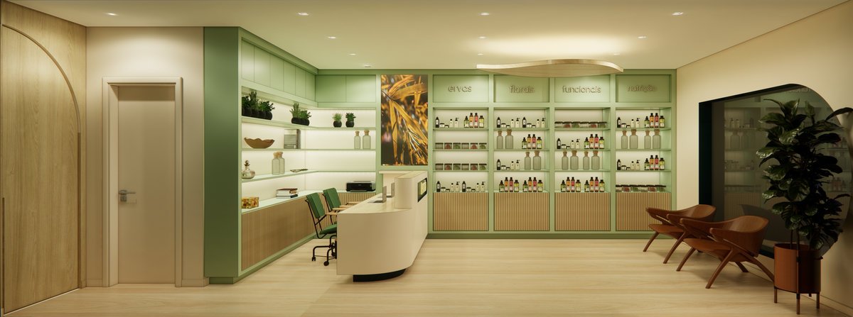 Fomos chamadas para desenvolver o projeto conceitual de uma Farmácia de Manipulação. O cliente já é proprietário de uma farmácia bastante tradicional no centro de São Paulo e está redesenhando e modernizando marca, processos e produtos. A primeira unidade está localizada em Moema e atualmente está em fase de obras.